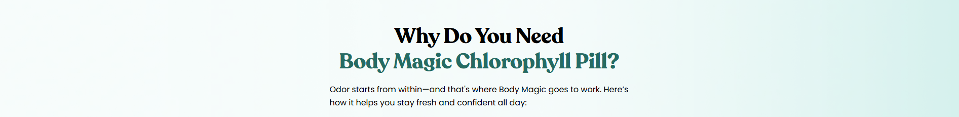 The theory is that chlorophyll deodorizes the body by detoxifying the digestive tract, neutralizing odors, and supporting a healthy microbiome. Chlorophyll is also known to have antioxidant properties that can help eliminate toxins that contribute to body odor
